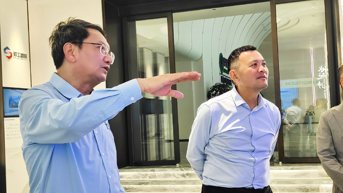 考察期間,李衛(wèi)國董事長一行參觀華騏環(huán)保展廳,詳細(xì)了解企業(yè)的科技創(chuàng)新成果、產(chǎn)業(yè)布局及企業(yè) “走出去” 的實(shí)踐探索。華騏環(huán)保董事長王健熱情的向來訪嘉賓介紹了公司戰(zhàn)略規(guī)劃、市場運(yùn)營等情況,展示企業(yè)實(shí)力。