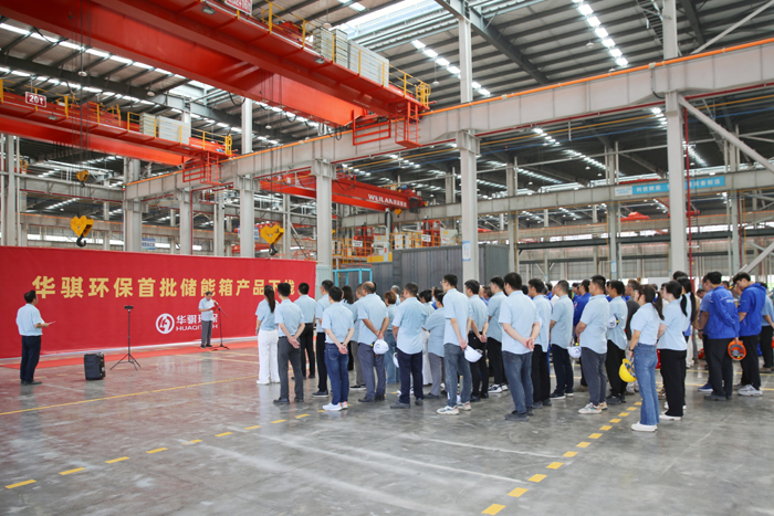 7月2日上午,“華騏環(huán)保首批儲能箱產(chǎn)品下線儀式”在安徽華騏環(huán)保科技股份有限公司旗下全資子公司安徽華騏蔚藍智能裝備有限公司順利舉行。馬鞍山經(jīng)開區(qū)黨工委副書記劉凌、華騏環(huán)保董事長王健、總裁鄭杰、蔚藍智能裝備總經(jīng)理程曉虎等領(lǐng)導見證下線儀式。華騏環(huán)保董事長王健、蔚藍智能裝備常務副總經(jīng)理張中群分別致辭。劉凌、王健、鄭杰、程曉虎、張中群為第一臺駛下生產(chǎn)線的儲能箱產(chǎn)品揭幕。